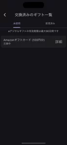 タップしていただくと交換済みのギフトが一覧で表示されます。