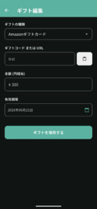 ギフト管理機能は、Amazonギフトカードなどのギフトコードや、えらべるPayなどの受取URLを一括管理できる便利な機能です。